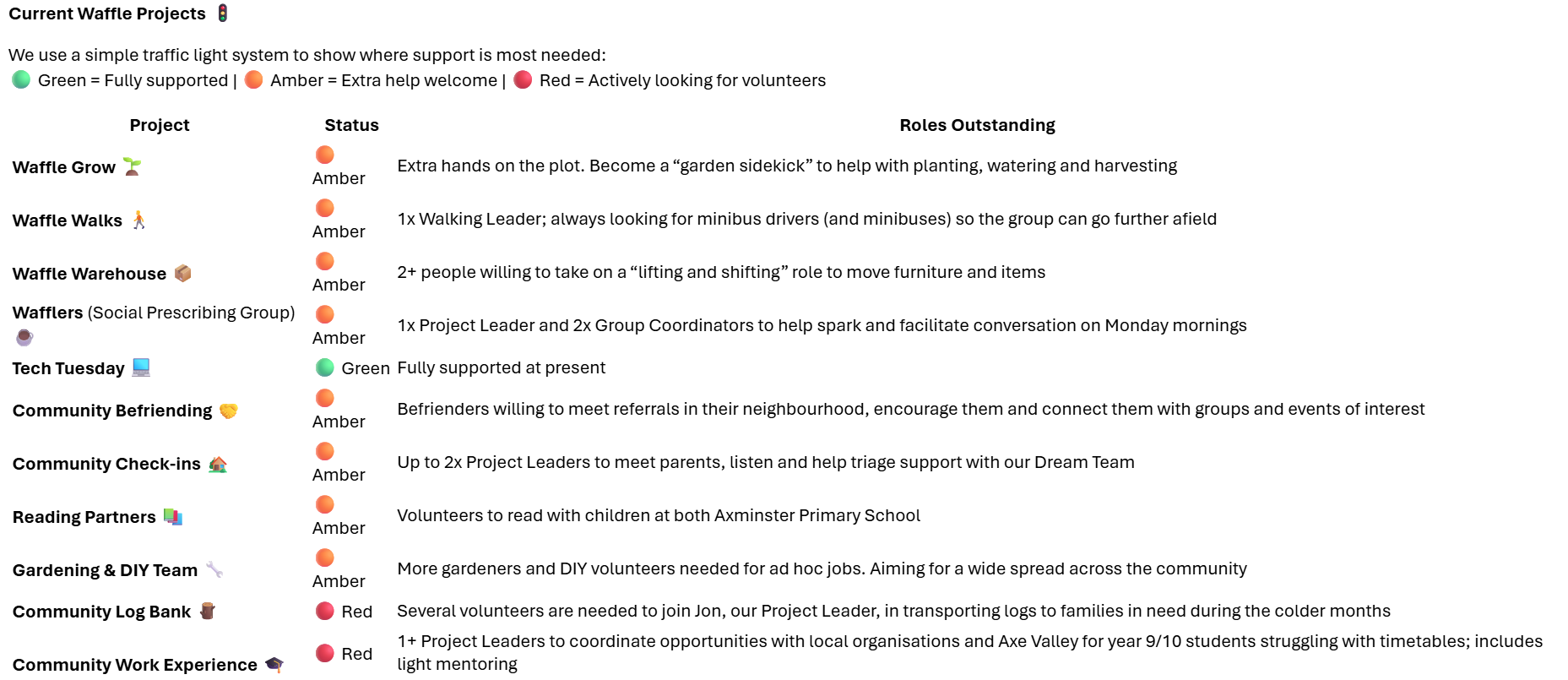 The Axe Valley Waffle Community are always looking for volunteers to support with the many local community projects that they initiate and are involved in.